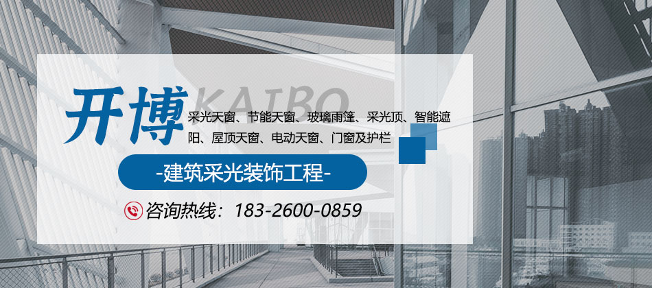 合肥開博建筑裝飾品有限公司是一家從事豪華采光天窗、節能天窗、玻璃雨篷、采光頂、智能遮陽、屋頂天窗、電動天窗、門窗及護欄、耐磨地坪,研發、設計、生產、安裝為一體的綜合型企業。公司座落于承東啟西、貫通南北的安徽省省會合肥。公司采用國內及先進技術,依靠齊全的資料、新穎的設計、精心的制作、高超的安裝工藝承接不同的建筑采光裝飾工程。我們愿以很好的產品質量,完善的服務,良好的信譽,秉承“義利相溶、誠信守道、回歸自然、節約能源、造福社會”為企業宗旨,一如既往地與海內外各界朋友真誠合作,共同發展,與您攜手共創美好明天!